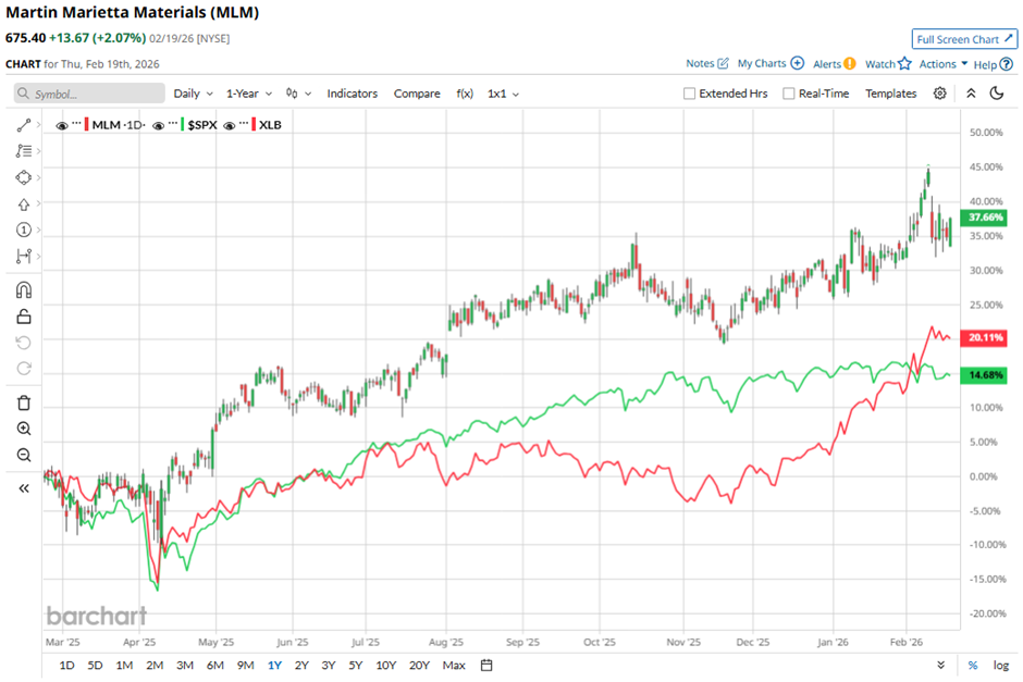 Shares of the Raleigh, North Carolina-based company have outperformed the broader market over the past 52 weeks. MLM stock has increased 29.7% over this time frame, while the broader S&P 500 Index ($SPX) has gained 11.7%. Moreover, shares of the company have risen 8.5% on a YTD basis, outpacing SPX's marginal return.
