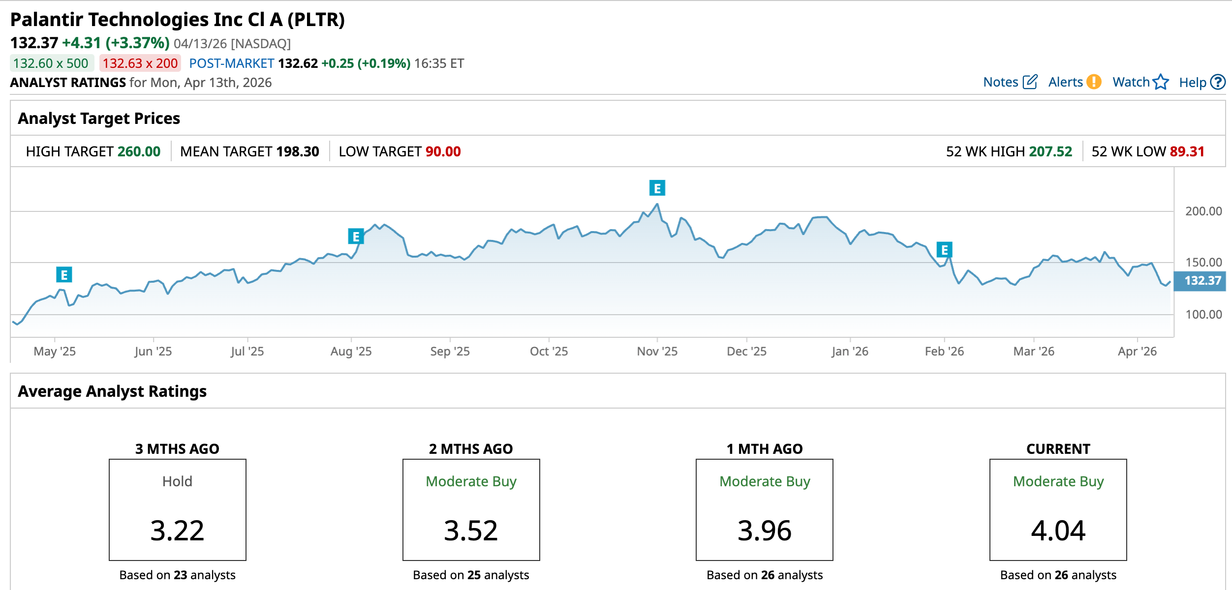 The upside potential in Palantir still looks compelling. The average price target of $198.30 suggests a solid 49.8% upside from current levels, while the Street-high target of $260 points to a potential surge of 96.4%, showing just how bullish some analysts remain on the stock’s future.