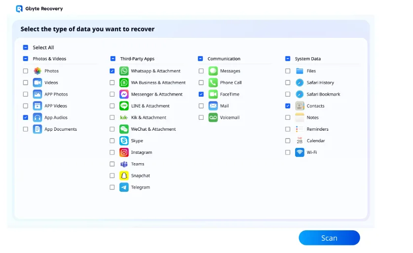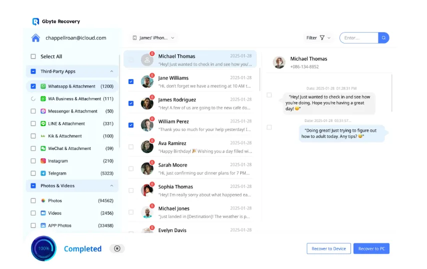 Through Gbyte, it is possible to restore deleted photos in WhatsApp even in the event of no iCloud backup or incomplete backup.