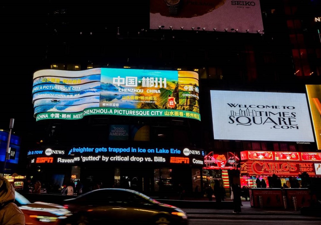 Chenzhou city image appears in Times Square, New York, USA