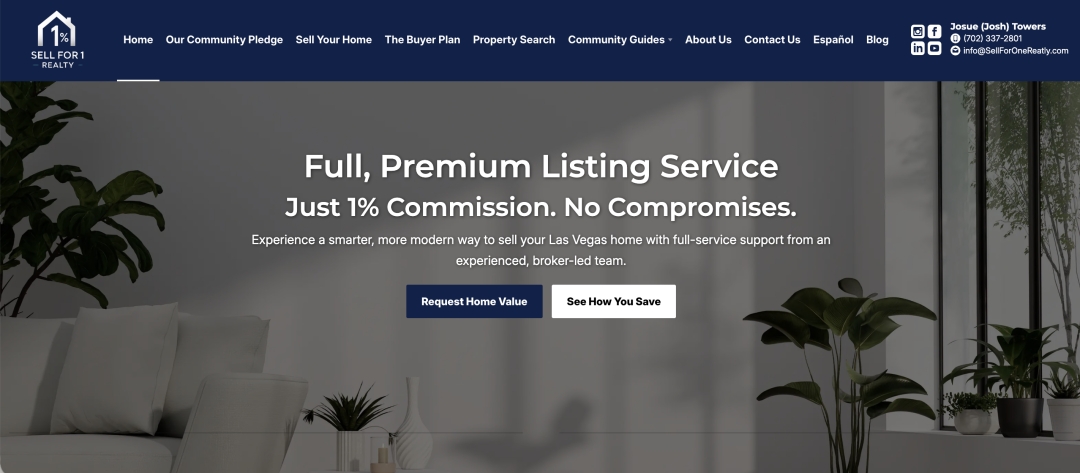 Sell For One Realty is a Nevada-based real estate brokerage serving homeowners throughout Las Vegas, Henderson, and North Las Vegas. The company specializes in a modern full-service listing model designed to help sellers retain more equity while benefiting from experienced broker supervision, professional marketing, and complete transaction management.
