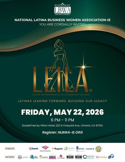 Ontario, CA - April 8, 2025 - The National Latina Business Women Association of the Inland Empire Institute (NLBWA-IE) proudly announces the return of its signature celebration, the 2026 LEILA™ Awards Ceremony (Latina Entrepreneur in Leadership Awards™). This distinguished gala honors exceptional Latina entrepreneurs, executives, and innovators whose leadership is driving economic growth and creating generational impact across the Inland Empire and beyond.
