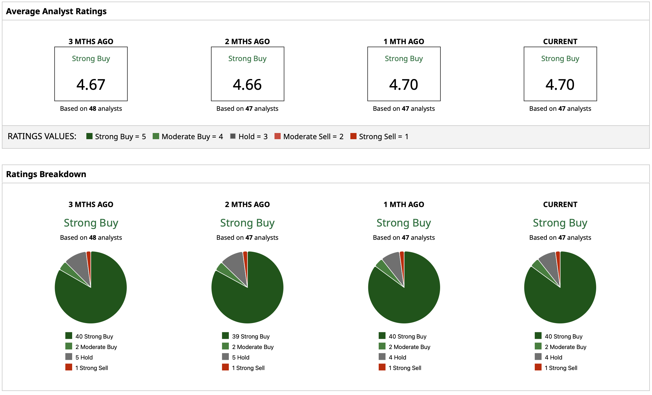Analysts continue to be extremely bullish with a “Strong Buy” consensus rating. Loop Capital lifted its target price to a street high of $350 due to “the next Golden Wave of Gen-AI adoption.”