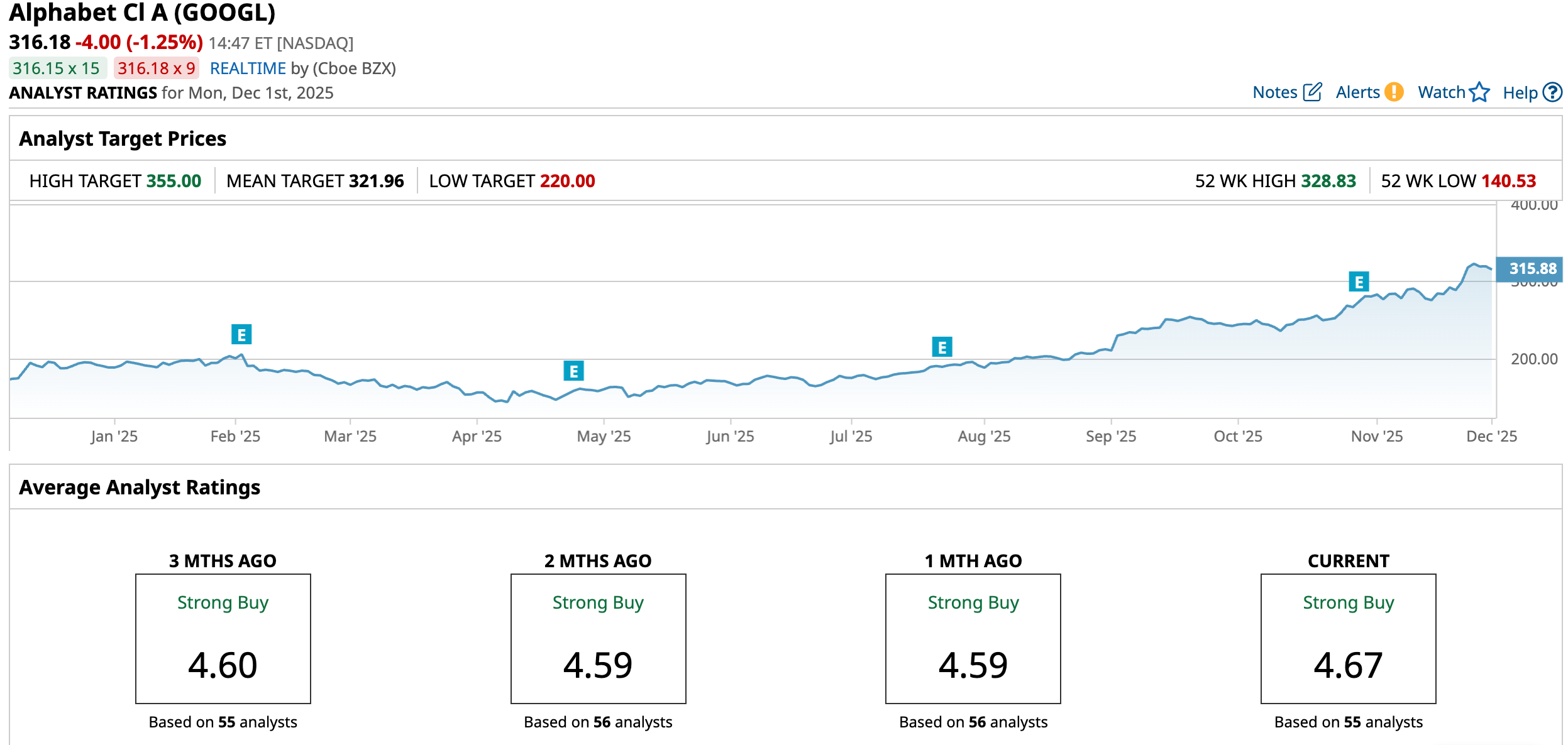 Overall, Wall Street’s conviction in GOOGL remains firmly bullish. Among 55 analysts covering the stock, a commanding 44 rate it a “Strong Buy,” four call it a “Moderate Buy,” and only seven recommend “Hold.” The average price target of $321.96 points to limited upside from current levels, but the most optimistic target of $355 still leaves room for an 12.4% move higher.
