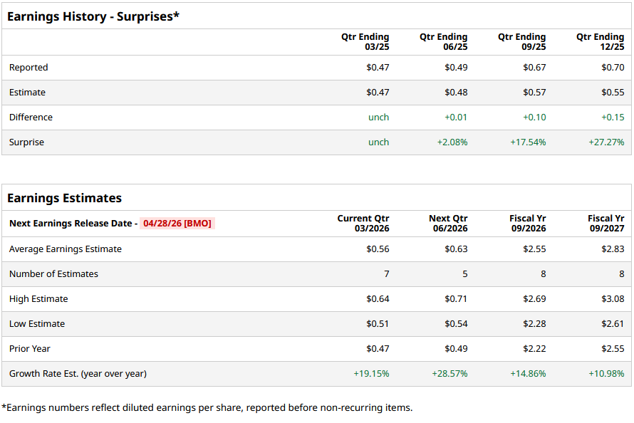 For fiscal 2026, analysts project the company’s EPS to be $2.55, up 14.9% from $2.22 in fiscal 2025. Moreover, its EPS is expected to rise by roughly 11% year over year (YoY) to $2.83 in fiscal 2027.