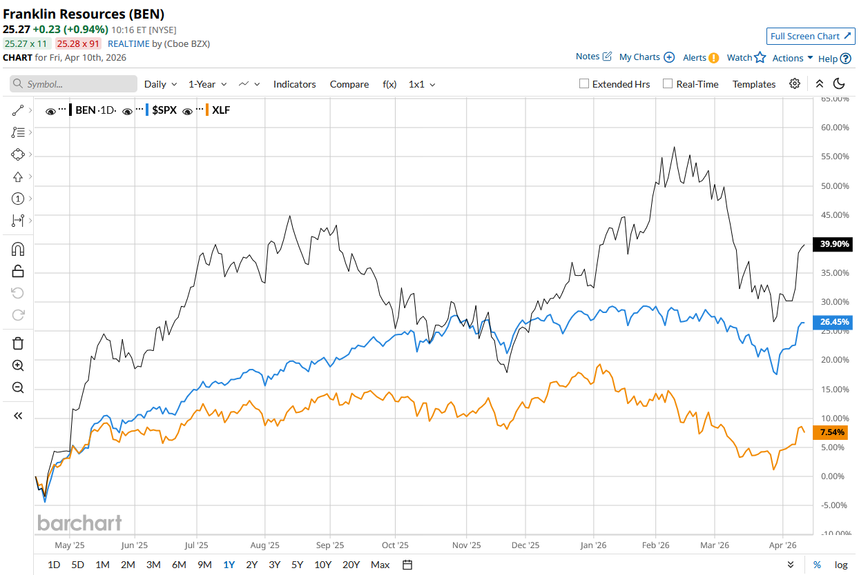 BEN stock has grown 41.8% over the past 52 weeks, outperforming the S&P 500 Index’s ($SPX) 29.7% rise and the State Street Financial Select Sector SPDR ETF’s (XLF) 10.6% rise during the same time frame.