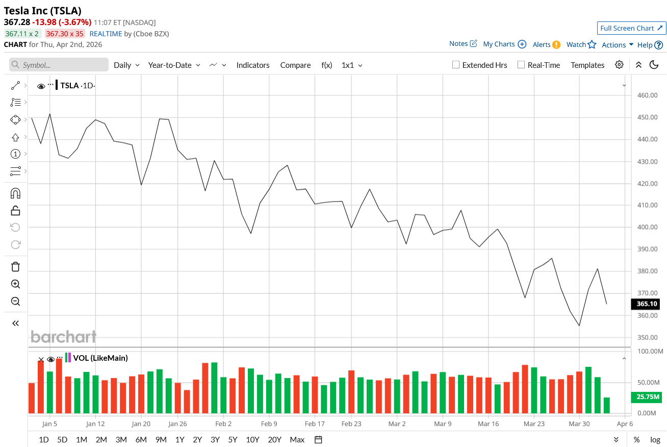 Tesla has delivered impressive growth over the past five years, with revenue and earnings compounding at annual rates of 24.63% and 34.93%, respectively. However, repeating that level of performance in the near term appears increasingly difficult, as the latest quarterly results illustrate, as the stock is down 19% on a year-to-date (YTD) basis.
