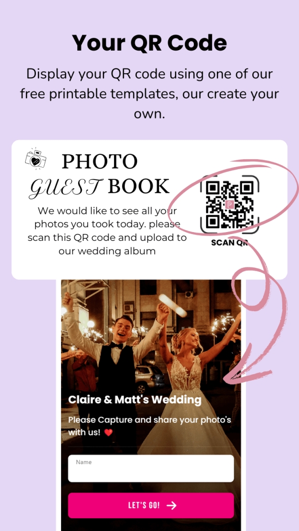 With PixelParty's cutting-edge technology, every captured moment is securely stored in a digital photo album, keeping all photos and heartfelt messages in one easy-to-access location. This simple QR code for wedding photos is revolutionizing how people collect and cherish memories. With three easy steps, here is how it works:
