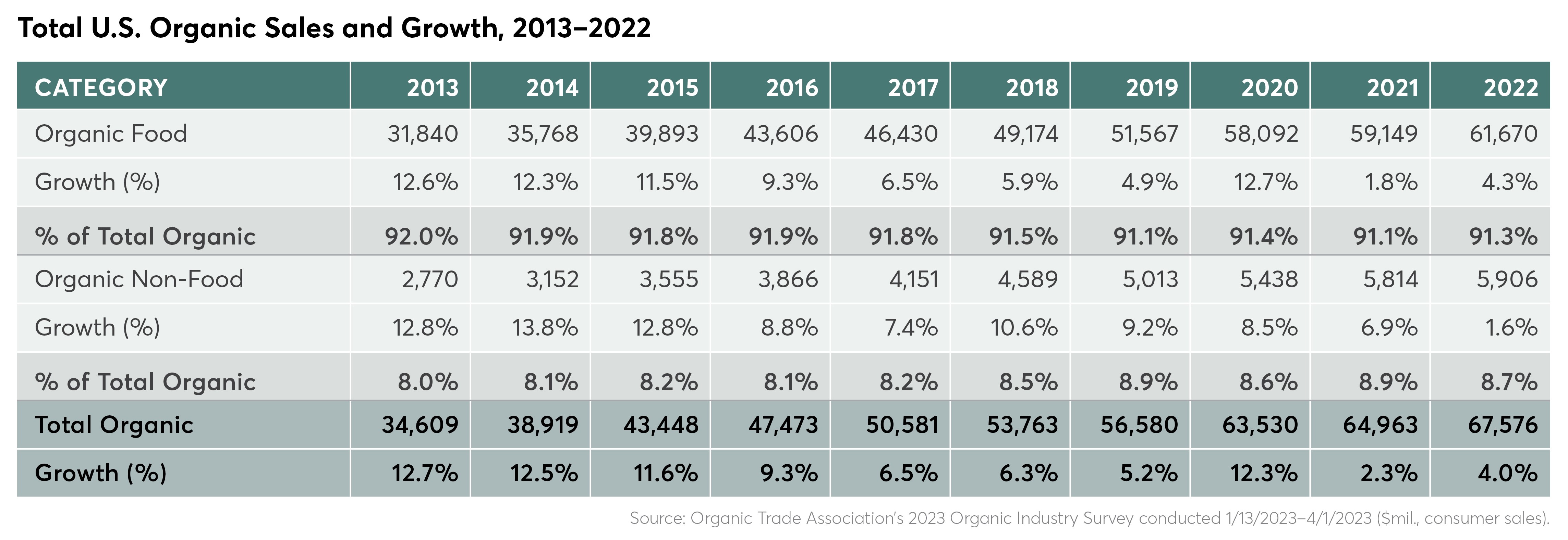 - Total U.S. Organic Sales and Growth, 2013-2022