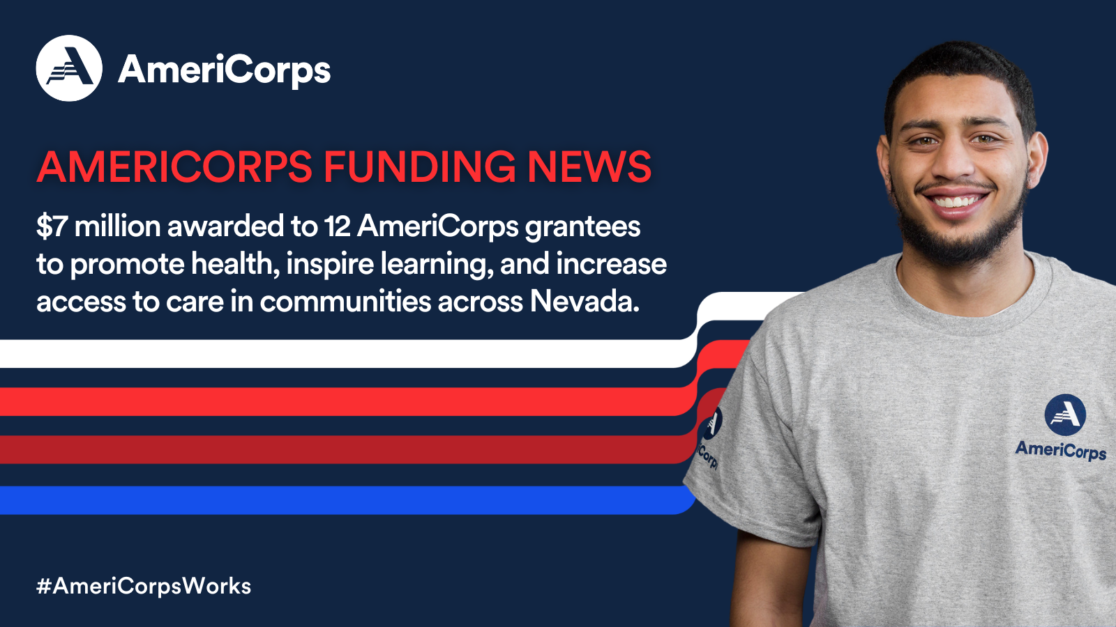 Twelve local Nevada organizations were awarded funds focused on a wide range of community-based solutions. This funding supports AmeriCorps members and volunteers as they tackle some of the state’s toughest challenges, including environmental issues, educational learning services and enrichment, reading programs, job skills, nutrition and food security services, opioid and drug abuse prevention, and more.