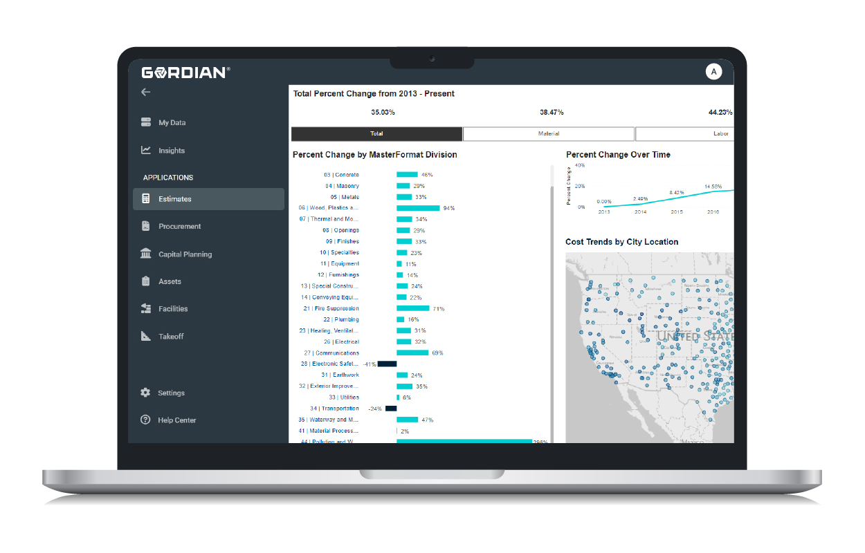 Gordian’s Data Insights – Cost Trends is offered as a SaaS solution, available through an annual subscription on the Gordian Cloud Platform. This platform not only connects essential workflows but accelerates data-driven decision-making and provides customers access to software tools and services to better budget and execute projects. Discounts are available for bundles with RSMeans Data Online subscriptions or upgrades, as well as for purchases of multiple seats.