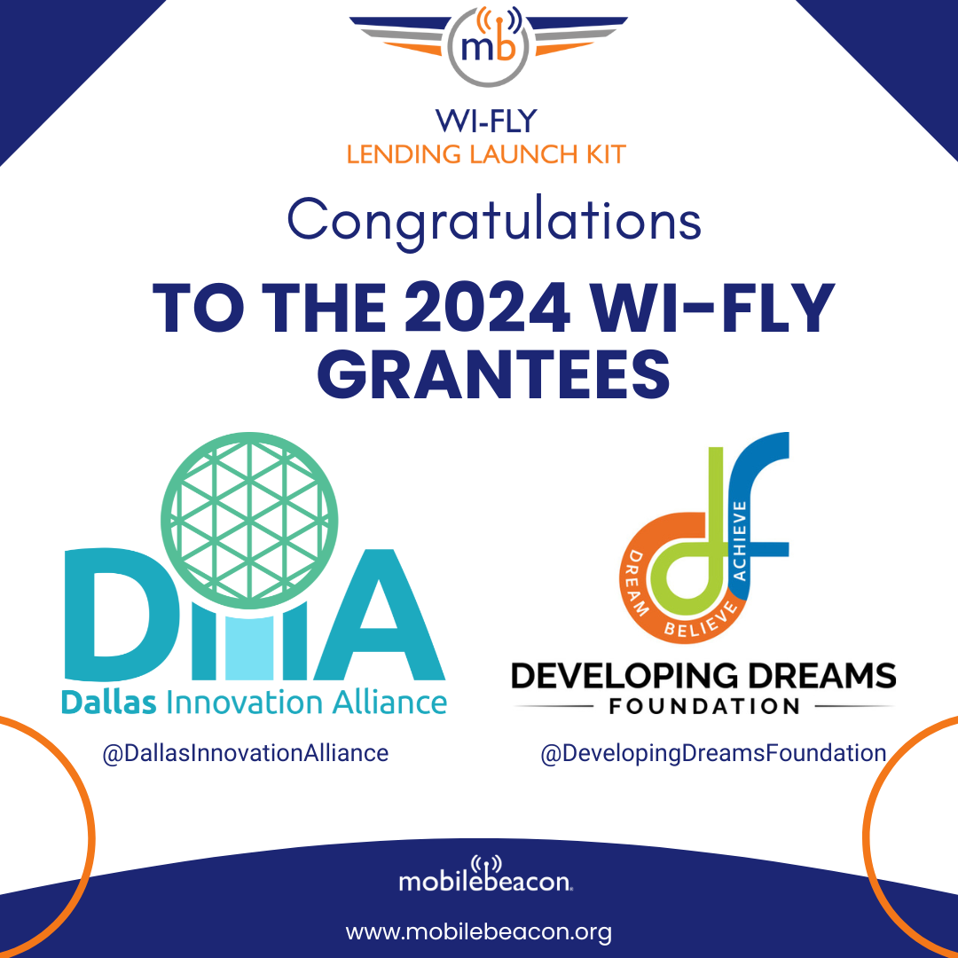 Johnston, RI, Jan. 21, 2025 (GLOBE NEWSWIRE) -- Mobile Beacon is proud to announce the 2024 Wi-Fly Lending Launch Kit Grant winners: Dallas Innovation Alliance (DIA) and Developing Dreams Foundation Inc. These two exceptional organizations exemplify innovation and commitment to advancing digital equity in underserved communities.