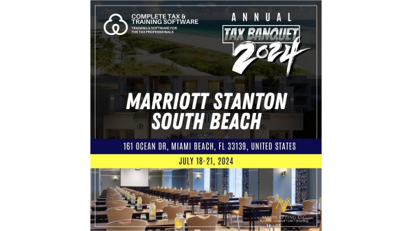 Complete Tax & Training Software (855-306-3336) announces new training sessions for tax professionals and business owners to be held between July 18th and July 21st, 2024 in South Beach, Florida.